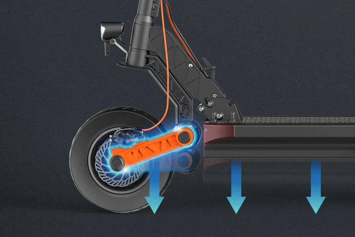Le système de suspension présente une conception à double bras oscillant pour les roues avant et arrière, ainsi que des pneus pneumatiques hautes performances de 10 pouces assurant une conduite en douceur sur toutes les routes.